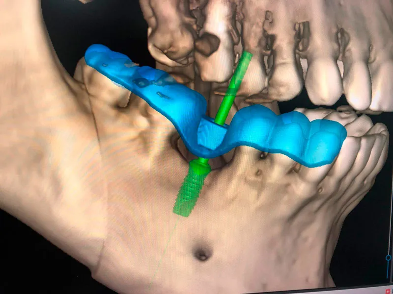 Es un procedimiento asistido por computadora. Antes de tu cirugía, hacemos un escaneo 3D de tu boca y hueso.